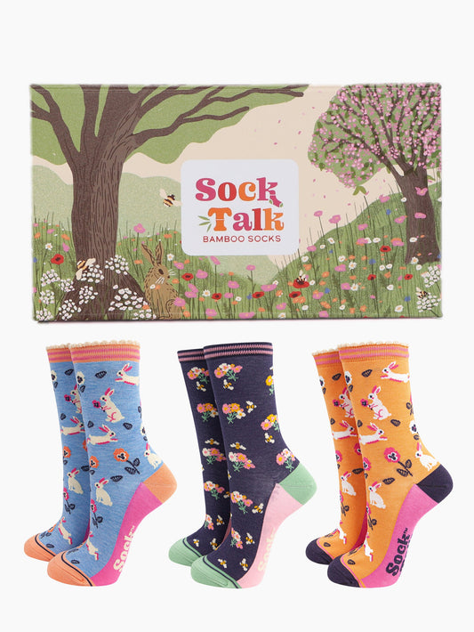 Women's Bamboo Socks Gift Box - Rabbits & Flowers