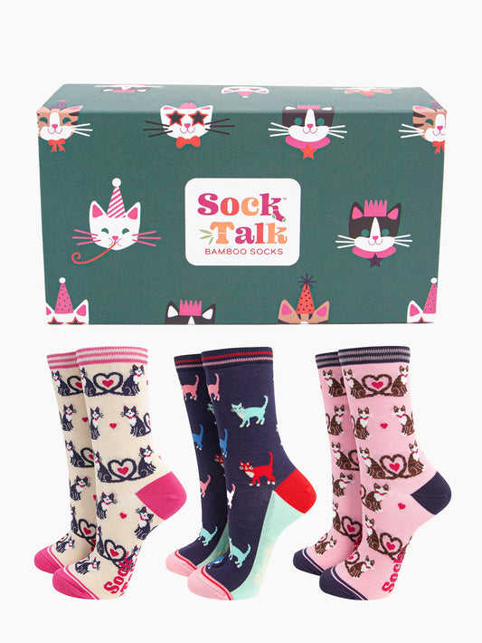 Women's Bamboo Socks Gift Box - Love Heart Cats