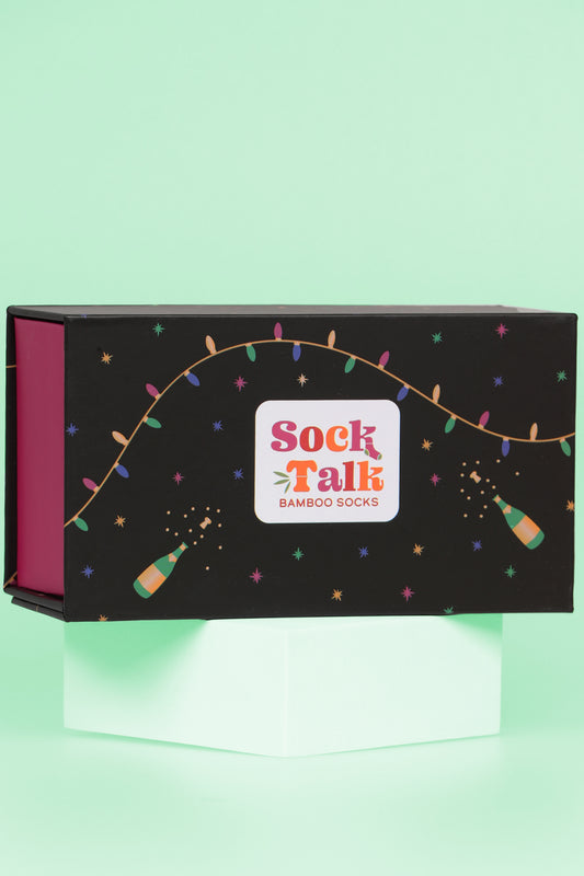 Women's Bamboo Black Glitter Socks Lightning Print Thunder Bolt Gift Set Box