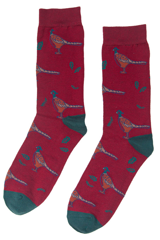 Men's Bamboo Socks Pheasant Novelty Socks Woodland Animals Red