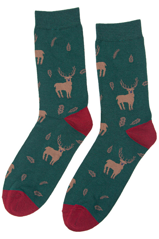 Men's Bamboo Socks Stag Print Novelty Dress Socks Green