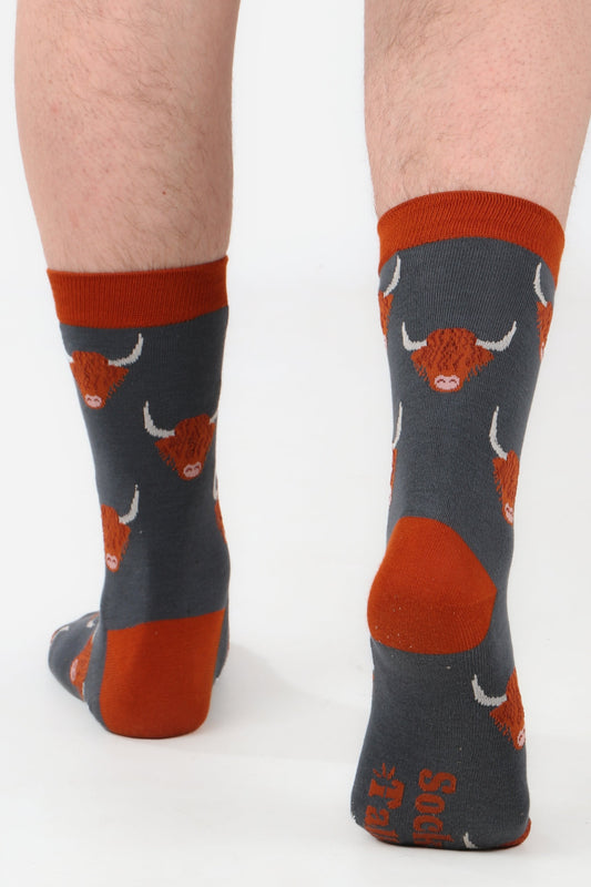 Men's Bamboo Socks Highland Cow Print Novelty Dress Socks Teal