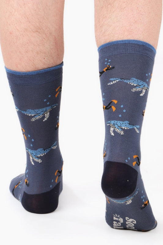 Men's Scuba Diver and Whale Bamboo Socks