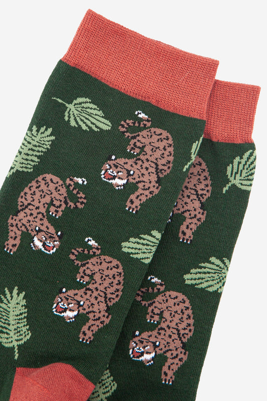 Men's Prowling Cheetah Jungle Leaf Print Bamboo Socks