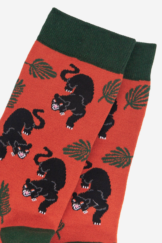 Men's Prowling Black Panther Jungle Leaf Print Bamboo Socks