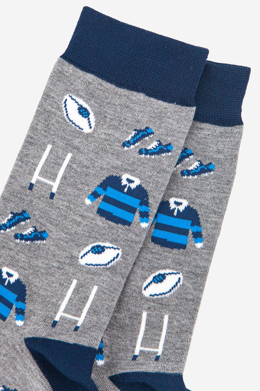 Men's Rugby Goal Kit Bamboo Socks in Grey and Navy Blue