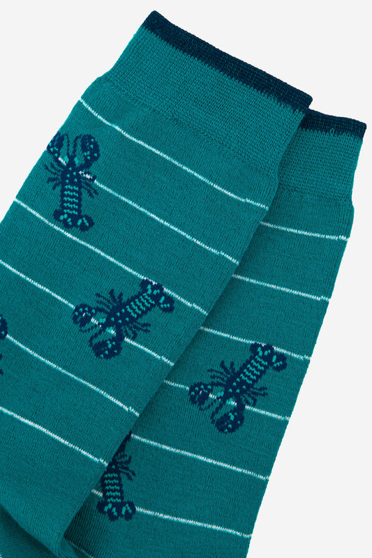 Men's Lobster Bamboo Socks Stripe in Aqua Blue