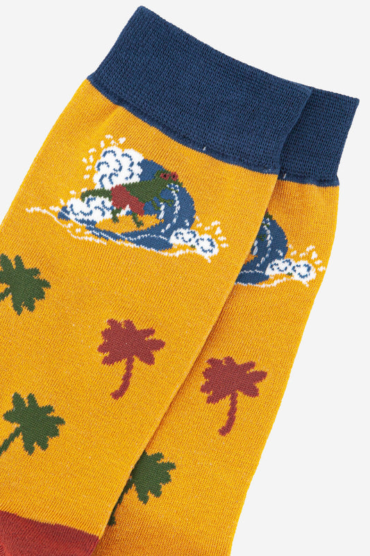 Men's Surfing Dinosaur Palm Tree Print Bamboo Socks