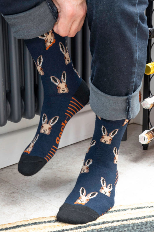 Men's Bamboo Socks - Navy Blue/Black, Dapper Hare