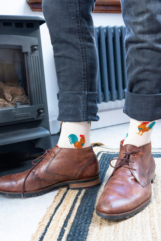 Men's Bamboo Crew Socks Christmas Cracker Gift Box - Navy Blue/Red, Rockin' Robin