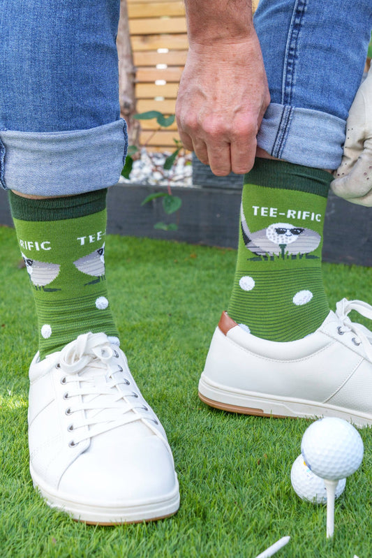 Men's Combed Cotton Socks Christmas Cracker Gift Box - Green, Teerific Golf