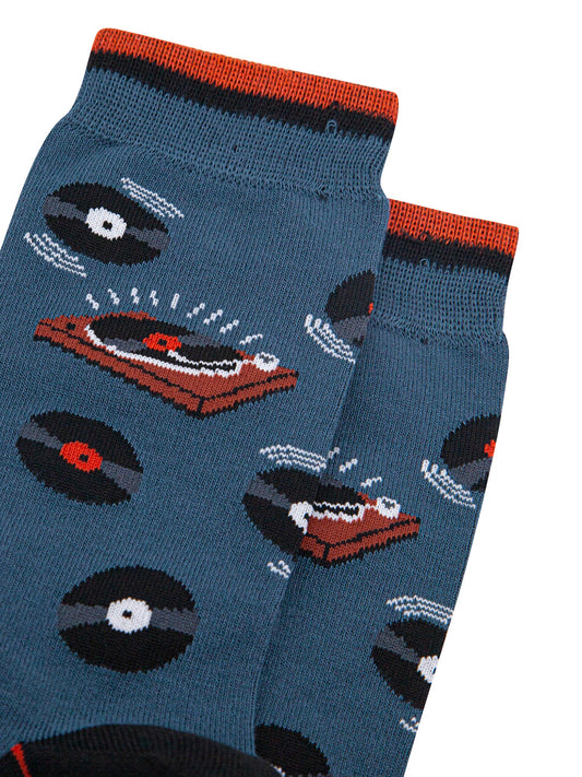 Vinyl Records Bamboo Socks in Teal