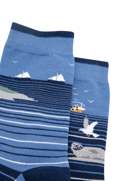 Coastline Stripes Combed Cotton Odd Socks in Blue