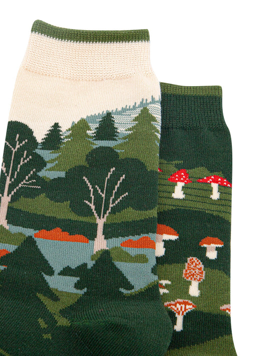 Woodland Forest Combed Cotton Odd Socks in Green