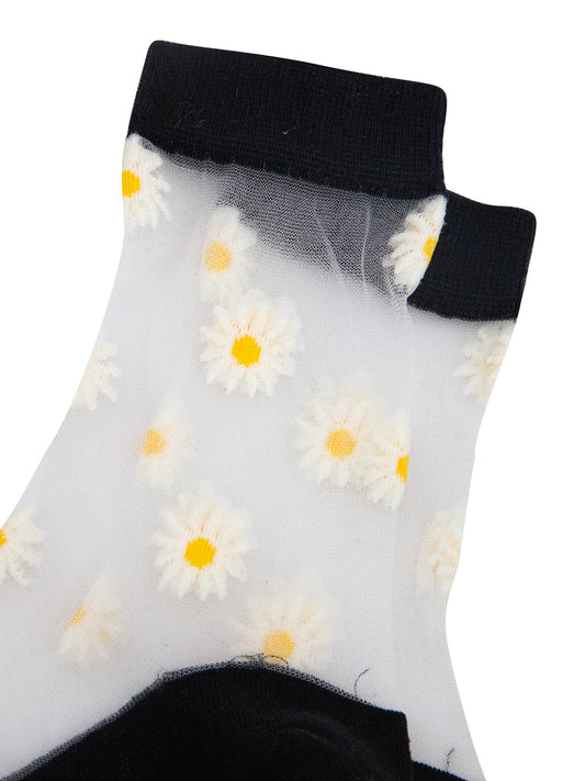 Dainty Daisy Combed Cotton Sheer Pop Socks in Black