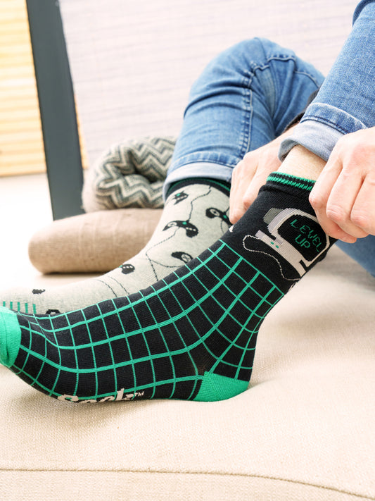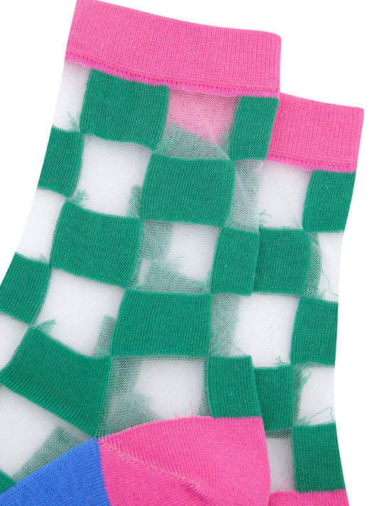 Square Checkerboard Combed Cotton Sheer Pop Socks in Green