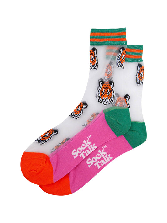 Tiger Faces Combed Cotton Sheer Pop Socks in Green