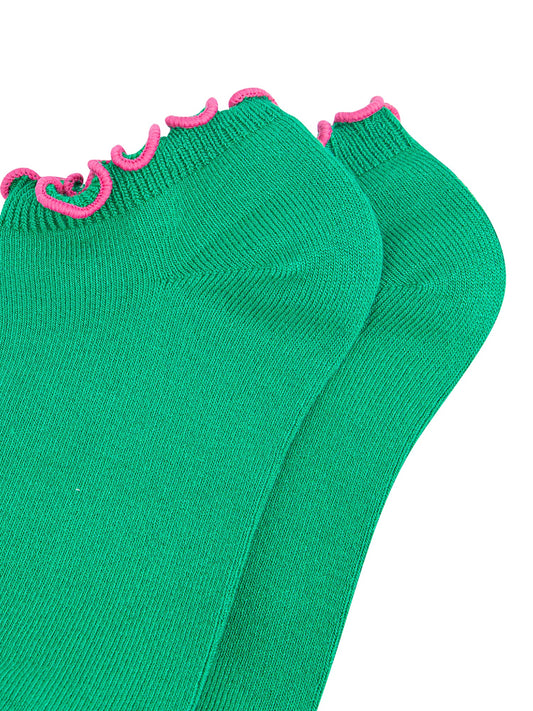 Frilly Trim Bamboo Trainer Socks in Green/Pink