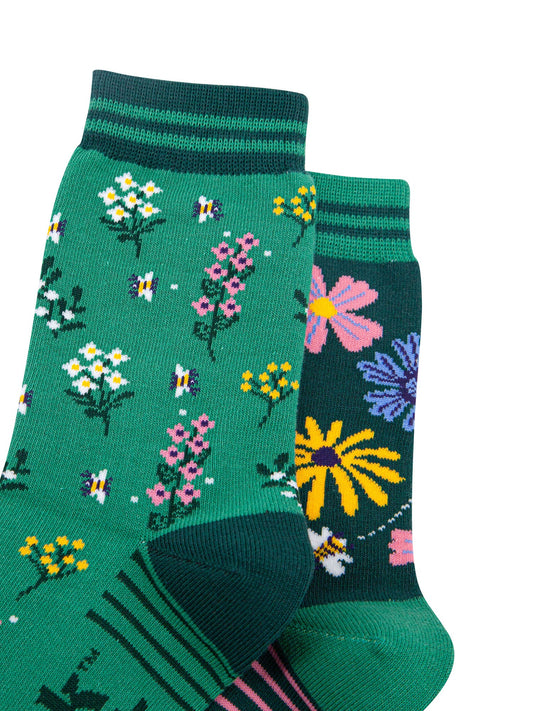 Bees Flowers Combed Cotton Sheer Pop Socks in Blue