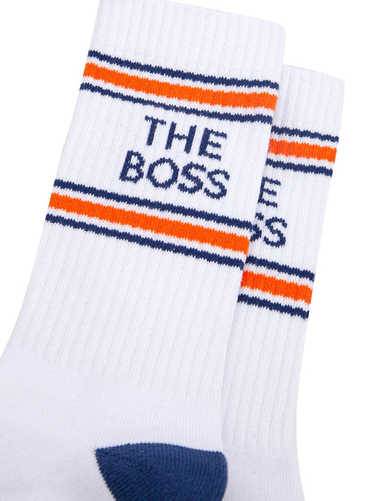 Leopard Print Striped Combed Cotton Sports Socks in White