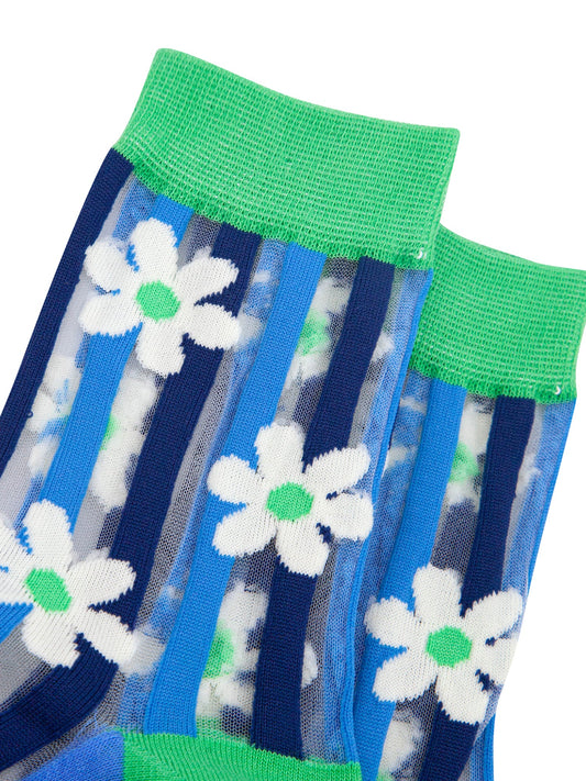 Floral Posy Combed Cotton Sheer Pop Socks in Blue