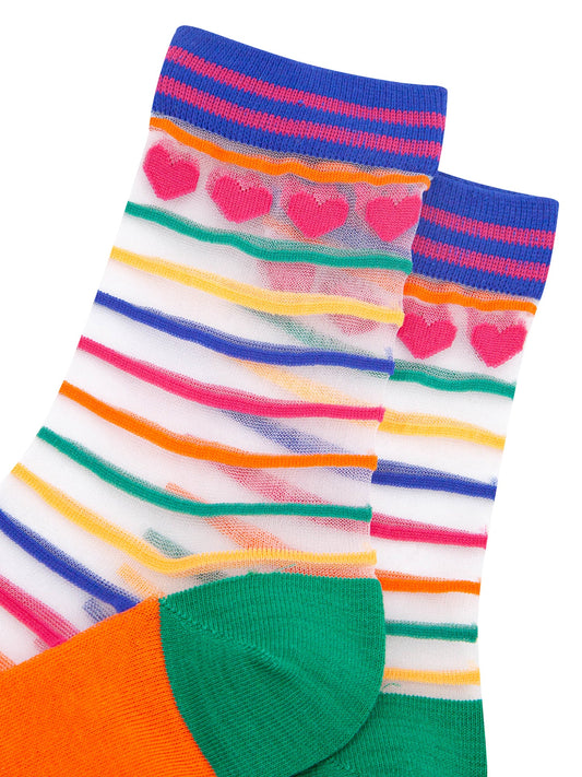 Hearts Rainbow Stripes Combed Cotton Sheer Pop Socks