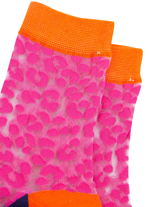 Leopard Print Combed Cotton Sheer Pop Socks in Pink