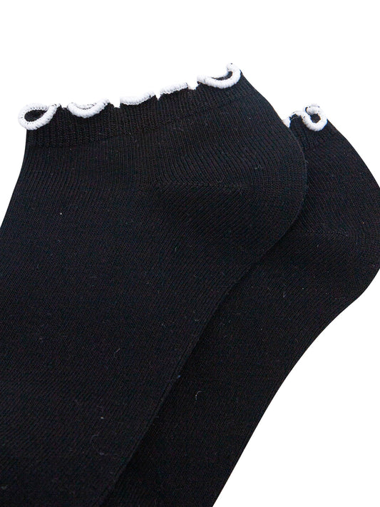Frilly Trim Bamboo Trainer Socks in Black/White