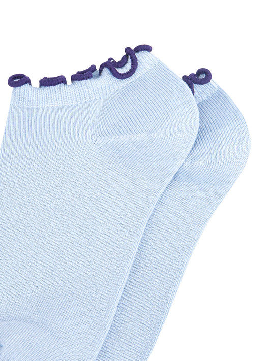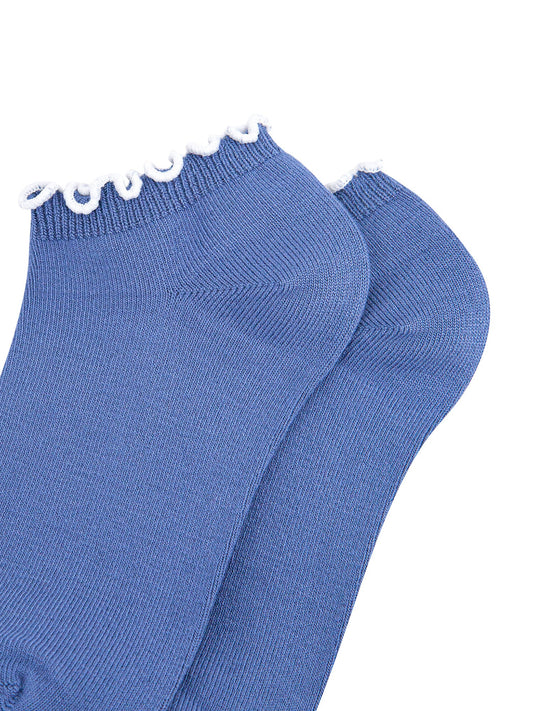 Frilly Trim Bamboo Trainer Socks in Blue/White
