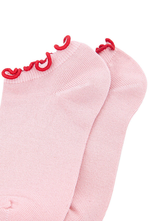 Frilly Trim Bamboo Trainer Socks in Pink/Red