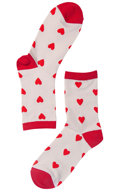 Womens Bamboo Socks Red Love Hearts Novelty Ankle Socks Cream