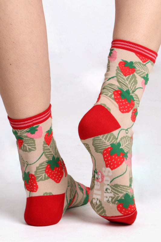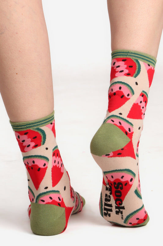 Women's Sheer Ankle Socks- Green/Red, Stripe & Bow