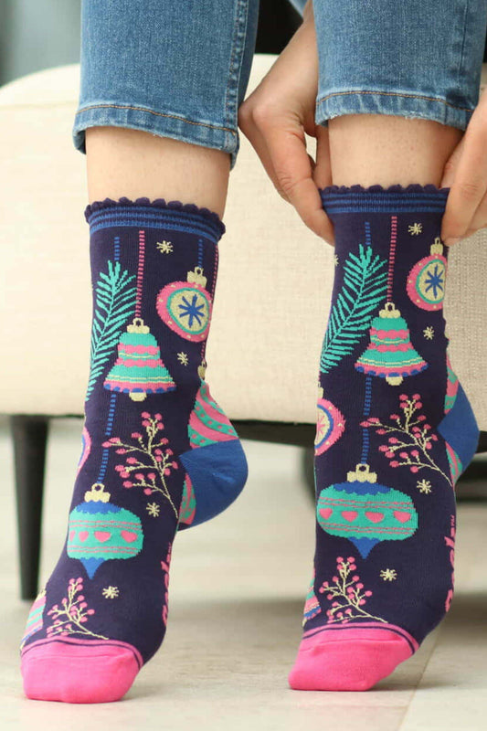 Christmas Baubles Bamboo Socks in Navy/Multi