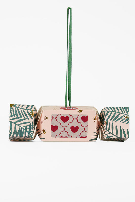 Women's Bamboo Ankle Socks Christmas Cracker Gift Box - Cream/Pink, Love Heart Tails