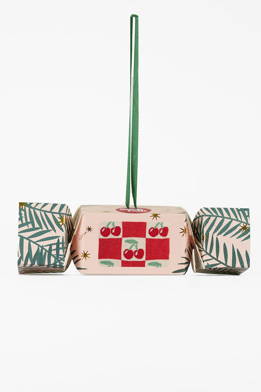 Women's Bamboo Ankle Socks Christmas Cracker Gift Box - Cream/Red, Cherry Squares