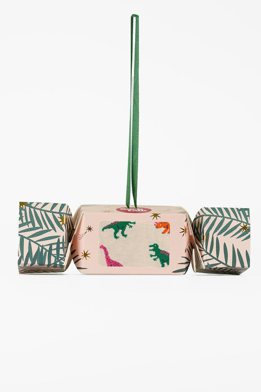 Women's Bamboo Ankle Socks Christmas Cracker Gift Box - Cream/Multi, Dinosaurs