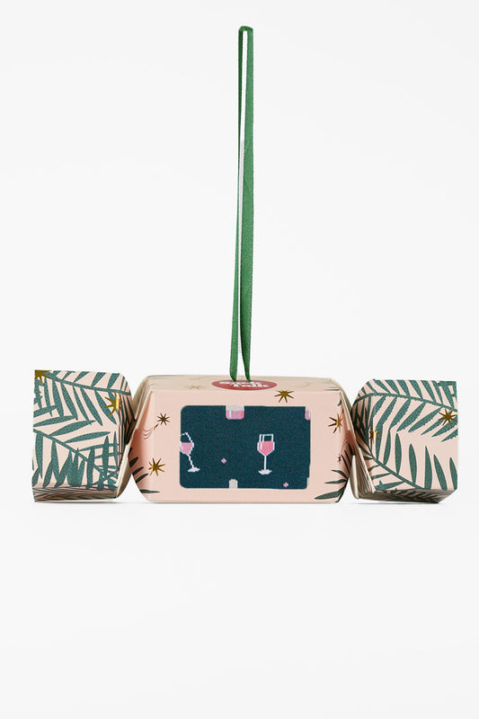 Women's Bamboo Ankle Socks Christmas Cracker Gift Box - Navy Blue/Pink, Champagne Celebration