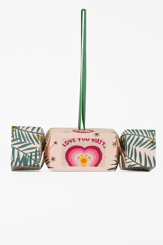 Women's Combed Cotton Ankle Socks Christmas Cracker Gift Box - Cream/Pink, Love You Watts