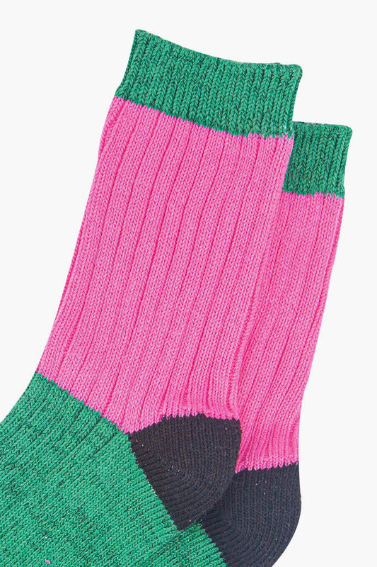 Women's Mid-Calf Socks- Pink/Green, Colour Block
