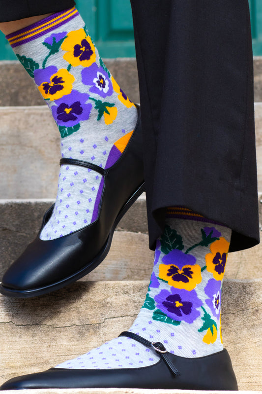 Women's Bamboo Socks - Mint, Hedgehog and Pansies