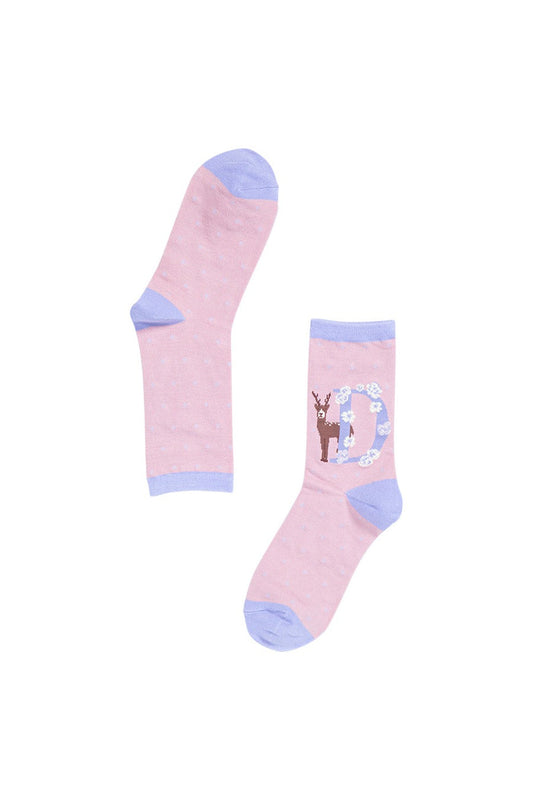Womens Bamboo Alphabet Socks Initial D Novelty Floral Animal Ankle Socks