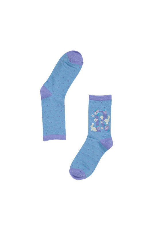 Women's Bamboo Socks - Orange, Rabbit and Flowers
