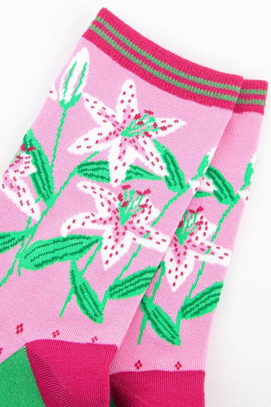 Women's Bamboo Socks - Green/Pink, Fox Woodland