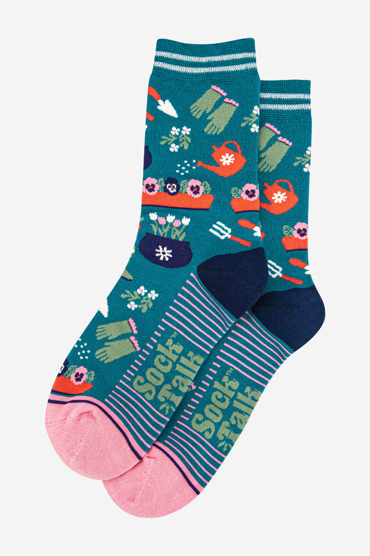 Women's Bamboo Socks - Teal/Pink, Gardening