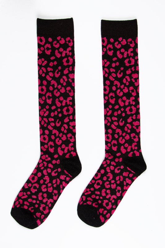 Women's Knee High Glitter Socks - Hot Pink, Leopard