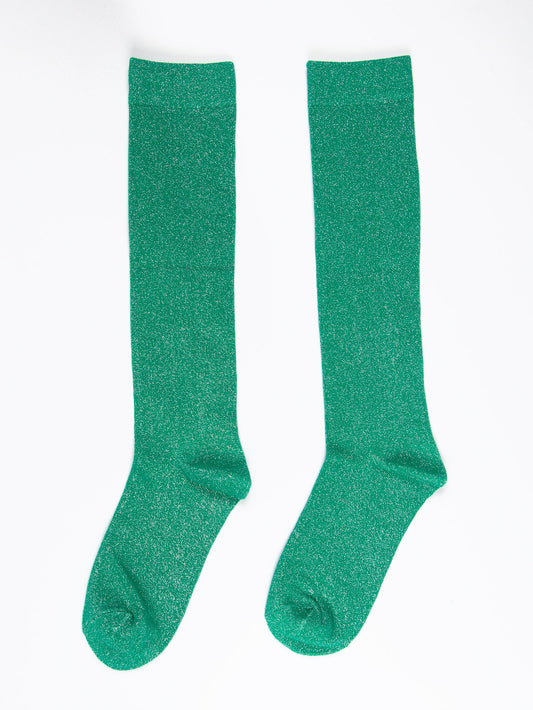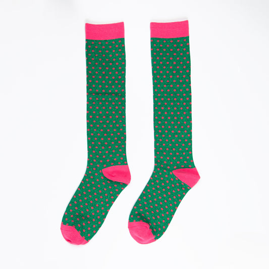 Women's Knee High Glitter Socks - Green/Pink, Small Polka Dots