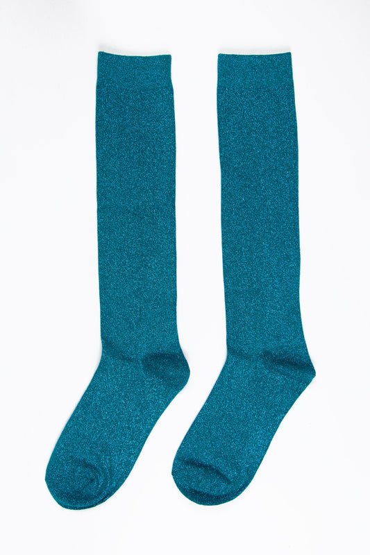 Women's Knee High Glitter Socks - Blue/Pink, Colour Block
