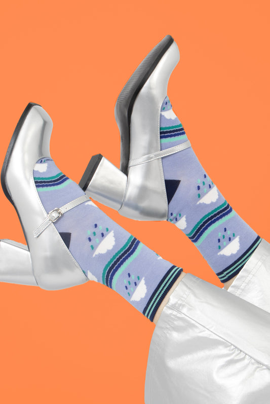 Women's Bamboo Socks - Blue, Sunshine Wavy Stripes