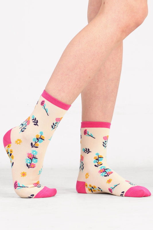 Womens Bamboo Socks Floral Ankle Sock Wild Flowers Pink