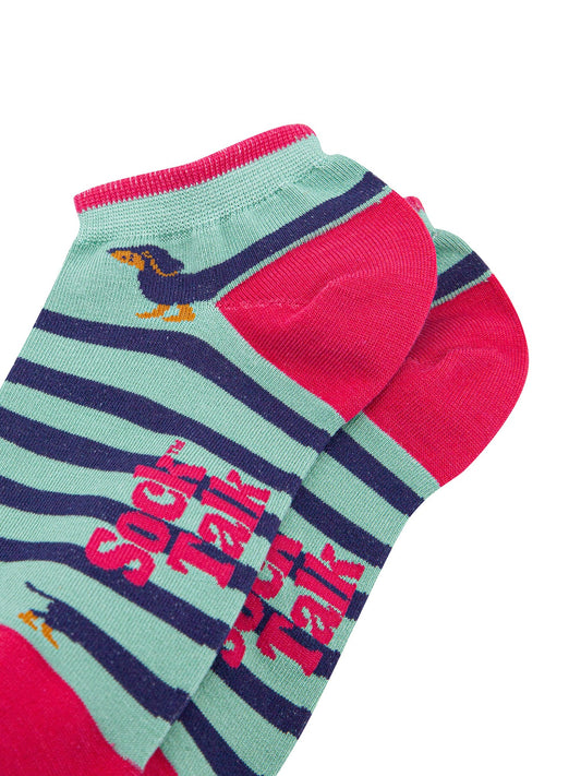 Love Heart Striped Bamboo Trainer Socks in Pink
